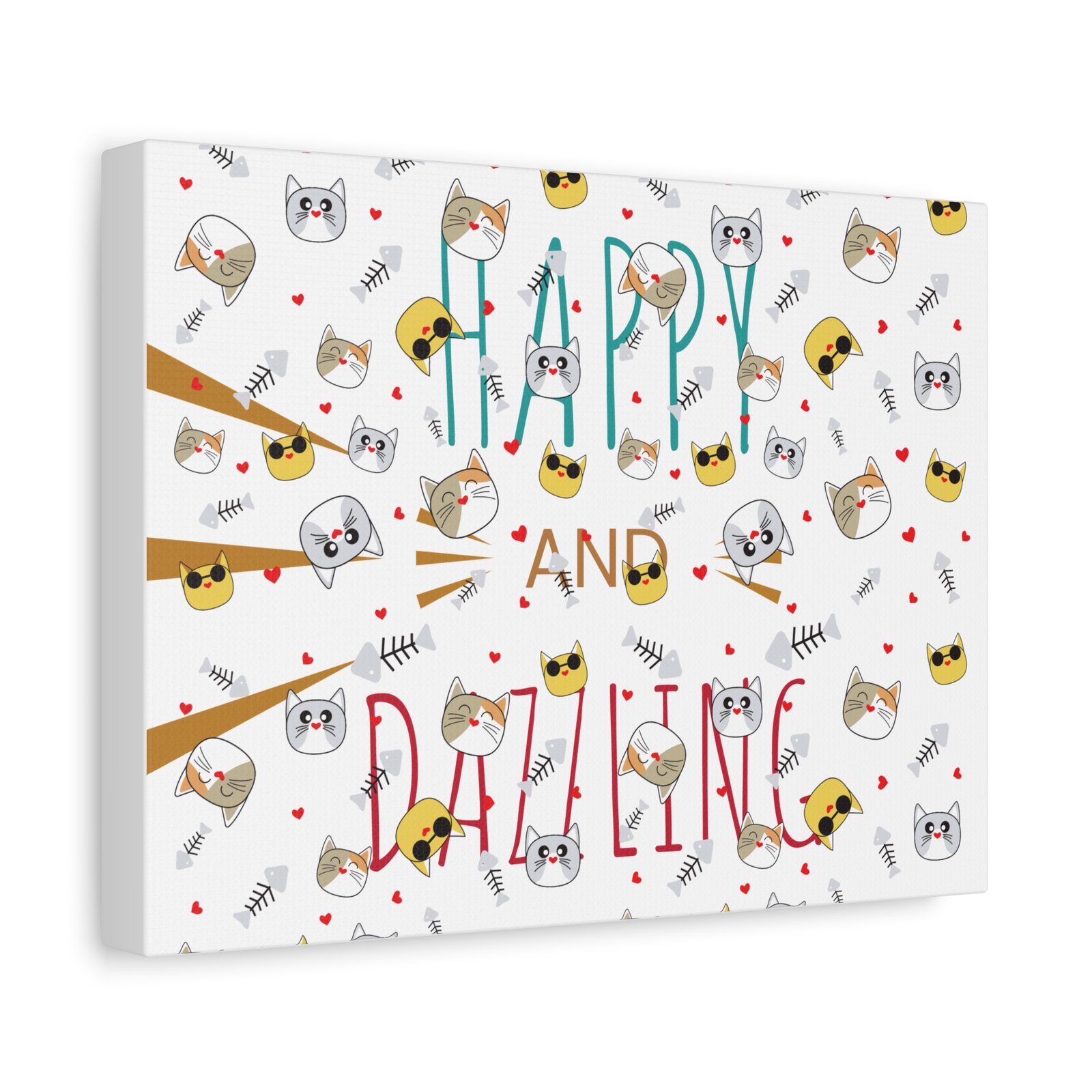 Whimsical Canvas Wall Art, Happy Dazzling Cat Decor, Cute Animal Prints, Nursery Wall Decor, Gift for Cat Lovers, Playful Home Decor