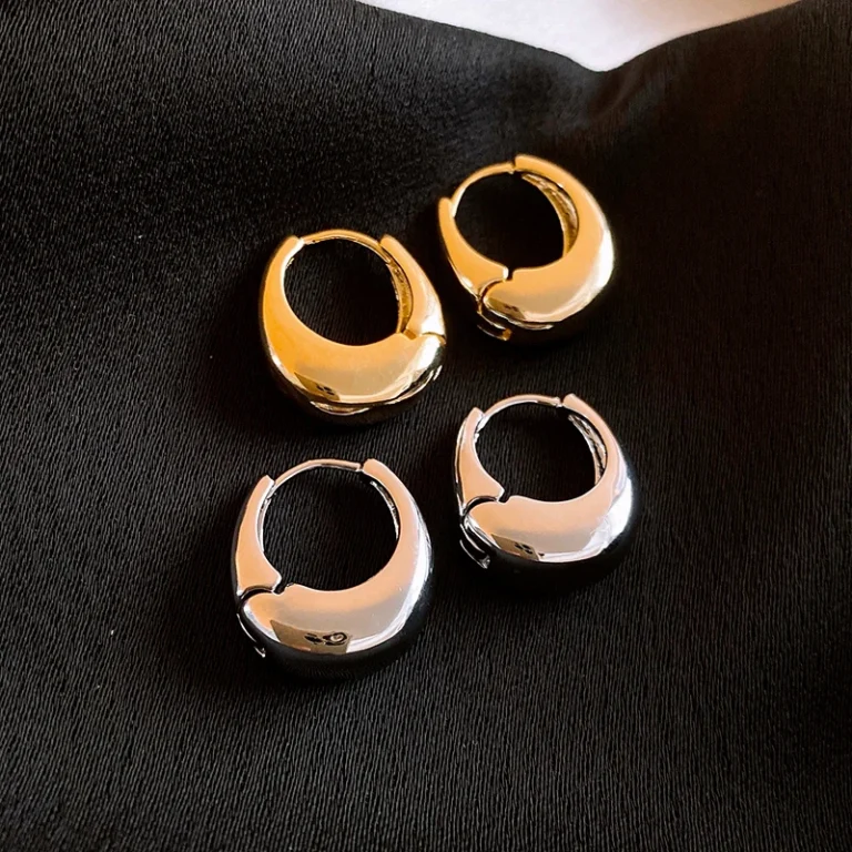 Metallic Style Ins Geometric Hoop Earrings For Women Korean Fashion Premium Ear Buckle Simple Commuter Temperament Fine Jewelry